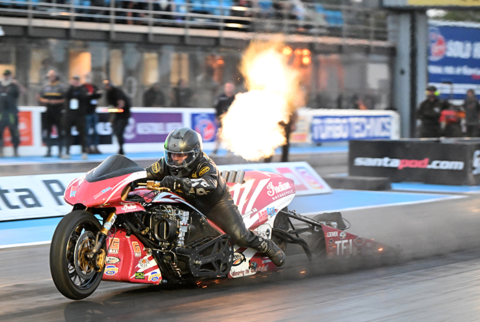 Coming off the back of a second place finish in the FIM-E Top Fuel Bike points in 2025 thanks in part to an event win at the Hockenheimring’s NitrOlympX, Stuart Crane underlined his status as the quickest funnybike rider in Europe with a 6.1722/221.46 at Santa Pod at the season ending Euro Finals. During a bit of down time in between production runs for new and refined products at the Warpspeed Racing headquarters in rural Norfolk, we caught up with Stuart to find out a bit about thoughts on 2025, working with a widespread network of racers and some highly debated news emerging from the FIM-E for 2026.