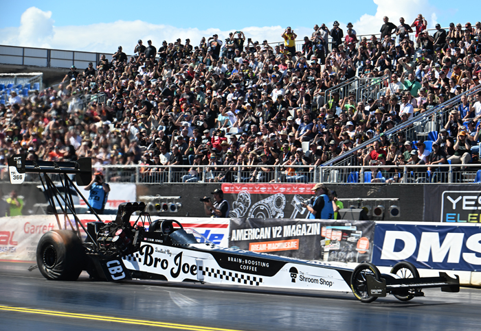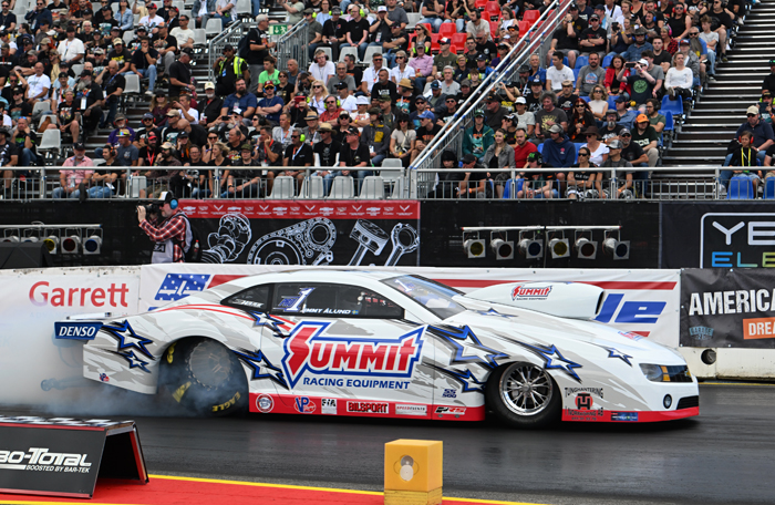 Liam Jones improved his ET to 4.42 seconds and remained in the number two position, while Susanne Callin improved to 4.47 seconds and remained in the number three position. Callin had a bad engine explosion on her last run of the day and the damage to the car is probably too much to be repaired in time, so it is unlikely that Callin will be back for tomorrow’s eliminations.