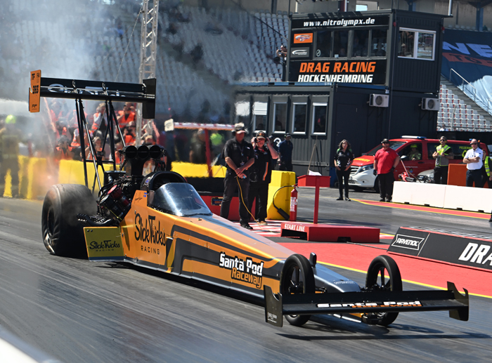 It was a great second day of qualifying for the NitrOlympX at the Rico Anthes Quartermile of the HockenheimRing, round three of the FIA European Drag Racing Championship. Friday leaders Jndia Erbacher (Top Fuel) and Jimmy Ålund (Pro Stock) remained in the number one position, but in Top Methanol Jonny Lagg took over the number one spot, while in Pro Modified David Vegter was a dominant force and claimed the number one position.