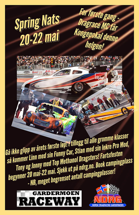 Spring Nats May 20-22nd at Gardermoen Raceway Norway is something you shouldn’t miss. A well-prepared track with great crew where you have all opportunities to make good runs during the weekend. Last registration day is already May 1st. This is a very good opportunity to get lots of great data on your vehicles, that will get you fine information for the coming season. And remember, there are no restrictions to get into Norway now, so finally we can travel as we used to do! And the weekend after you can go straight to Vårgårda Nats 9 and participate in the fourth race of Summit Racing EDRS Series event.