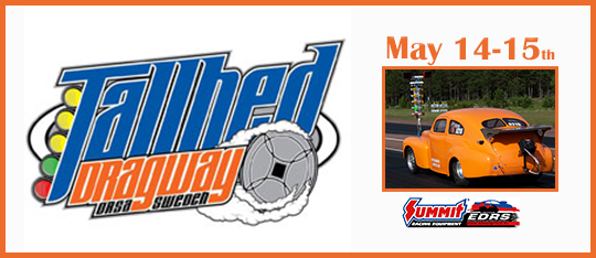 We start the Summit Racing EDRS Series at Tallhed Dragway in Orsa Sweden, May 14-15th. Last registration day is May 3rd, and that you do at www.dragracing.eu. This is a historic dragstrip, cosy and familiar. The evenings are made for BBQ and get-to-gether after a day of good racing. A very nice place to start the season, test your vehicles so all the winterissues are cleard out until the next weekend when Spring Nats at Gardermoen Raceway takes off.