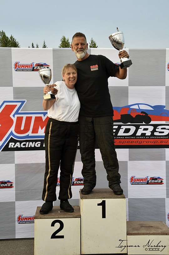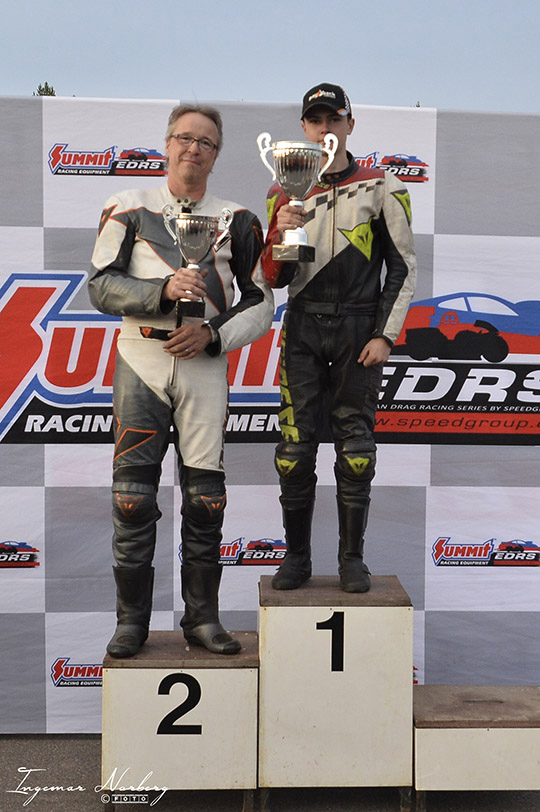 By that we can now present all winner of the weekend and that is a very nice thing to do. Congratulation to all of You! We can also tell that a new track record was made. Not by a Summit Racing EDRS Series class, but anyway a great hapening for Pite Dragway! Top Fuel Bike driver Mikko Rajanniemi from Finland did race at Kauhava last weekend, but the bike did´nt go well. So, the team decided to go to Piteå for a testround. That went much better. Both new track record and a personal best at 6,389 sec/325 km/h. A prove of a great job by the track prepp crew. Well done everyone. Next race is at Sundsvall Raceway, dont miss that!