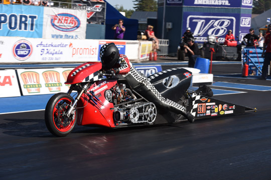 Finnish Super Twin racer Samu Kemppainen has not made any major changes to his six-second bike over the off-season, just basic maintenance, pistons, con rods, bearings etc. “We have a pretty hectic schedule this year”, said Kemppainen. “I’m planning to do contest both the FIM European Championship plus the EDRS Pro Nordic MC and three events at Alastaro. My goal this year is to run a new PB in the 6.4s, anything else will just be a bonus! Mika Sjöstedt remains as my crew chief and the team is the same as it has been since I started to race in 2008”.