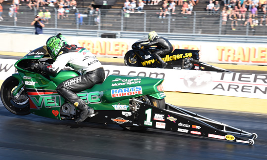 Top Fuel Motorcycle has five entrants at the Tierp Internationals. Reigning champion is Jan Sturla Hegre from Norway, but with Rikard Gustafsson on the entry list, the Norwegian knows it will be tough to repeat that success.