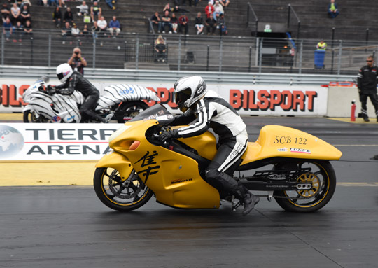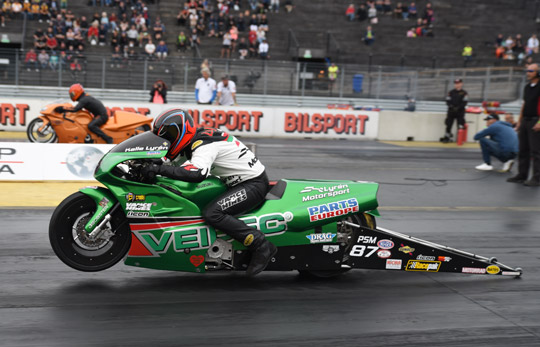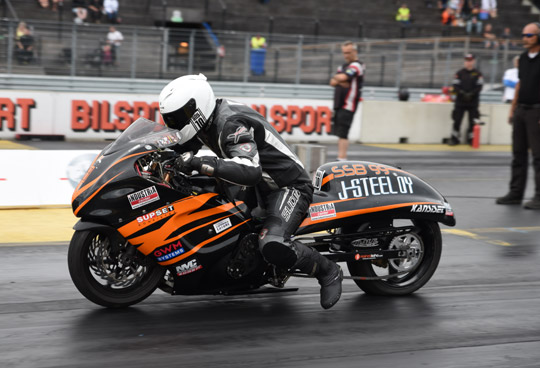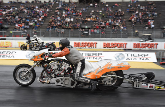 In Pro Stock Motorcycle Kalle Lyrén was the fastest rider all day. The number one qualifier had a bye run in the first round and defeated Timo Savolainen in the semi-final. In the final Lyrén had to face Thomas Olsen. After 7.02 and 7.01 seconds in the first two rounds, Lyrén recorded another 7.02 seconds in the final, to defeat Olsen.