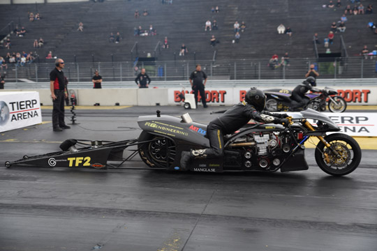 In Top Fuel Motorcycle Rikard Gustafsson defeated Peter Andersson in the semi-final and Thomas Pettersson in the final to take the win. The Swedish rider recorded 6.74 and 6.66 seconds to win the Tierp Internationals in this category.
