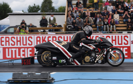 Rain brought an early end to the eliminations of the Drag Challenge Grand Opening, round three of the EDRS Pro Nordic Motorcycle Championship at the new Gardermoen Raceway. After the first round of eliminations, the rain that already badly affected the Friday and Saturday qualifying was back and after some short delays earlier on the Sunday, the race director had to cancel the Drag Challenge at 4 PM.