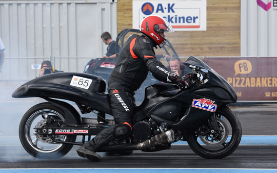 The weather was not with the racers and organisation this weekend at the Drag Challenge Grand Opening, the first race at the new Gardermoen Raceway and round three of the EDRS Pro Nordic Motorcycle Championship. After the Friday and Saturday qualifying was cut shot by the rain, the race director had to cancel the eliminations after round one. After some drizzle during the day that interrupted racing, heavier rain was back at 4 PM, and with a forecast of more rain to come, it was no use to delay the eliminations any further.