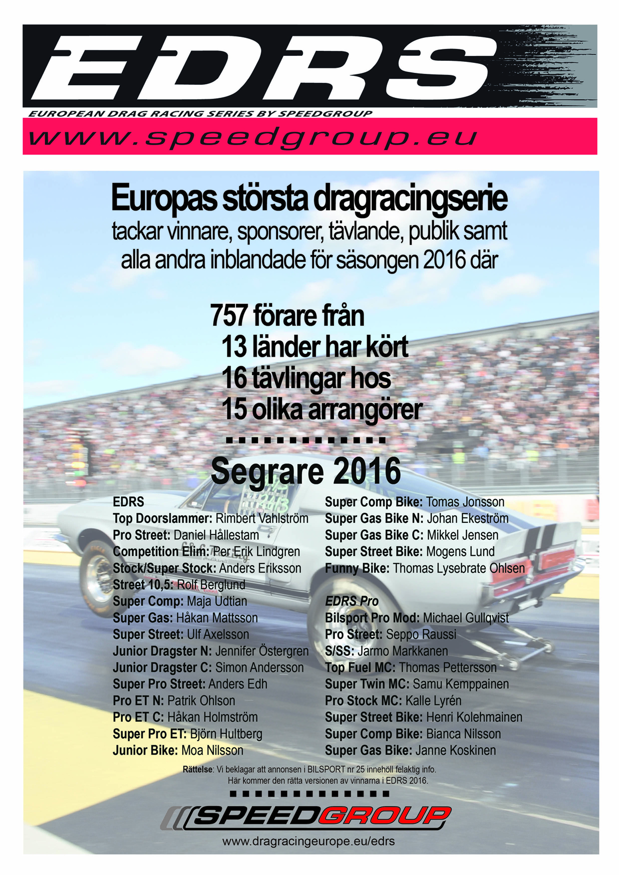 Sometimes things get wrong. We´re very sorry about this. But here is right names of 2016 years EDRS winners. We salute them even more this time.