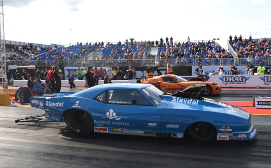 There was a major upset in the first round in Pro Modified as David Vegter, the number two qualifier and number two in the championship as well, pulled a red light. Number one qualifier Jimmy Ålund didn’t make a mistake and advanced to the semifinal, where the 10-time Pro Stock champion had to face Michael Gullqvist. After a difficult qualifying the reigning champion was back to form just in time and defeated Kim Kristiansen in the quarter final in a stunning 5.89 seconds. Gullqvist repeated the 5.89-second run in an extremely close semifinal to defeat Ålund (5.91 seconds).