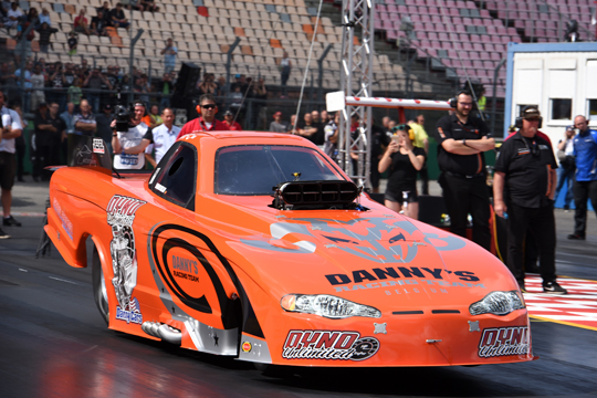 In Top Methanol number one qualifier Timo Habermann advanced to the final after the former champion defeated reigning FIA European Top Methanol Dragster champion Jonny Lagg in the semifinal.