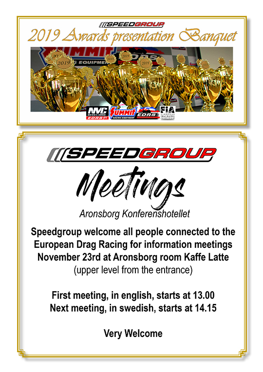 The 2019 dragracing season is over and winners and runner-ups are selected! Now is the time to highlight everyone who made this summer filled with happenings, fast and spectacular runs among this dragracing family we all are members in. So, don´t miss out to register to the 2019 Banquet the 23rd of November at Aronsborg in Bålsta Sweden. It´s going ot be fun!